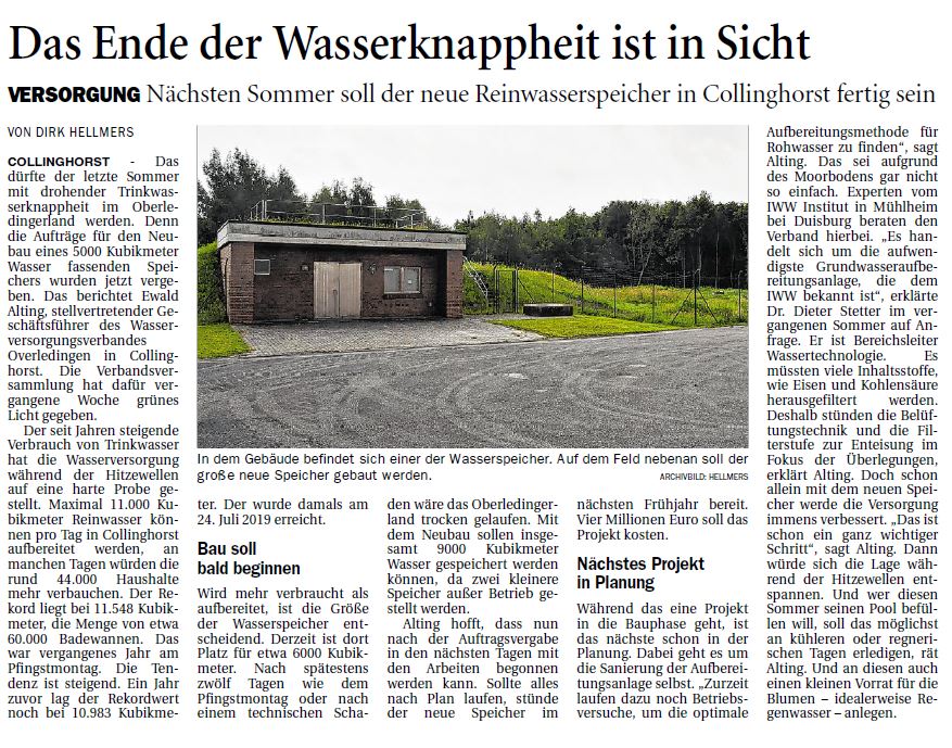Im Sommer 2022 soll der neue Reinwasserspeicher in Collinghorst fertig sein. Unser Büro in Aurich hat die gesamte Planung für die Ingenieur-Bauwerke, die Tragwerksplanung und die technische Ausrüstung gemacht. Außerdem haben wir einen landschaftspflegerischen Begleitplan erstellt und die Kompensationsflächen beplant. Der Bauherr wurde ebenfalls bei der Beantragung der Bauwasserhaltung unterstützt. Im Rahmen der Realisierung werden wir die Bauoberleitung und Bauleitung für die Ingenieur-Bauwerke und die technische Ausrüstung sowie die ökologische Baubegleitung durchführen. Auch die Pflanzarbeiten auf der Kompensationsfläche werden von uns geplant und die Ausführung koordiniert und überwacht.