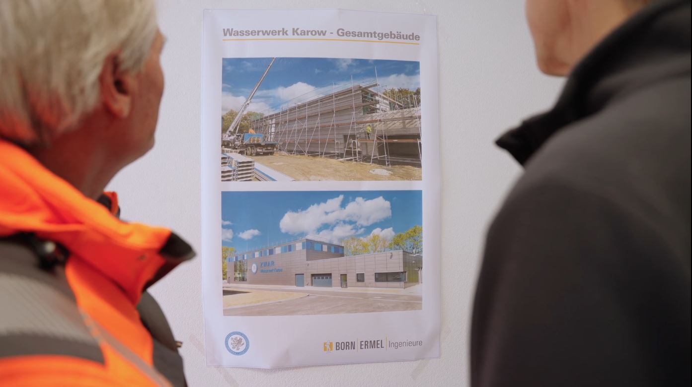 Der Zweckverband Wasserversorgung und Abwasserentsorgung Rügen betreibt auf der Insel Rügen das Wasserwerk Karow. Das Wasserwerk versorgt über ein Verbundnetz gemeinsam mit anderen Wasserwerken den östlichen Teil der Insel Rügen mit Trinkwasser. Alle Anlagen des Wasserwerkes Karow wurden auf dem vorhandenen Gelände neu errichtet. In der Wasseraufbereitung werden Bestandteile des Rohwassers durch Zugabe von Luftsauerstoff oxidiert und anschließend in einer einstufigen Filteranlage abgeschieden. Zur weiteren Speicherung des aufbereiteten Trinkwassers und dessen Verteilung befinden sich in der Reinwasserhalle zwei Reinwasserbehälter als Edelstahlsystemtanks und zwei Reinwasserpumpwerke. Das neue Wasserwerksgebäude in Stahlrahmenbauweise besteht aus der Filterhalle und der Reinwasserhalle zur Unterbringung der Maschinentechnik sowie einem Sozialtrakt inkl. Sozialraum, WC und Lagerraum. Durch eine Photovoltaikanlage auf dem Hallendach sowie eine große Fensterfront, die einen Einblick in die Technik der Filterhalle bietet, erhält das Gebäude einen modernen Charakter. Neben dem Wasserwerksgebäude wurde ein neues Absetzbecken für Filterrückspülwasser errichtet.